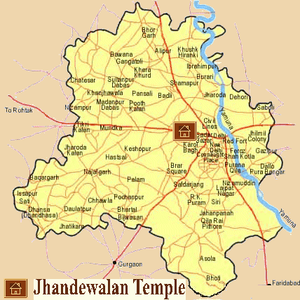 Jhandewalan temple is conveniently located in central part of New Delhi , India. It is on the Deshbhandu Gupta road. Nearby areas are Karol Bagh, Pahar Ganj, Pusa Road ,Jhandewalan Metro station, New Delhi Railway Station to name a few.It is connected to the Delhi Metro with nearest metro station as Jhandewalan. There is 5 - 10 minutes walk to the temple. |